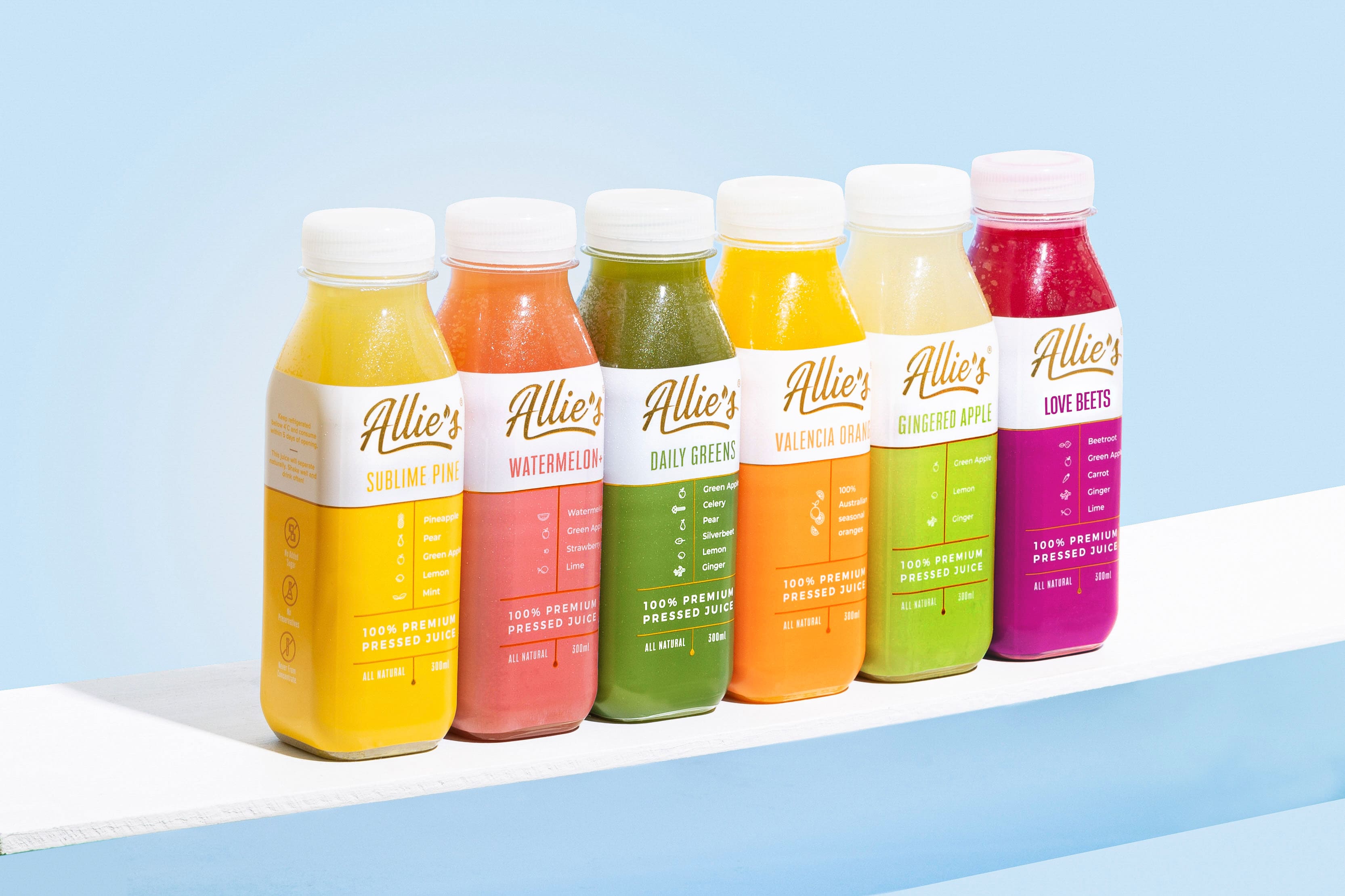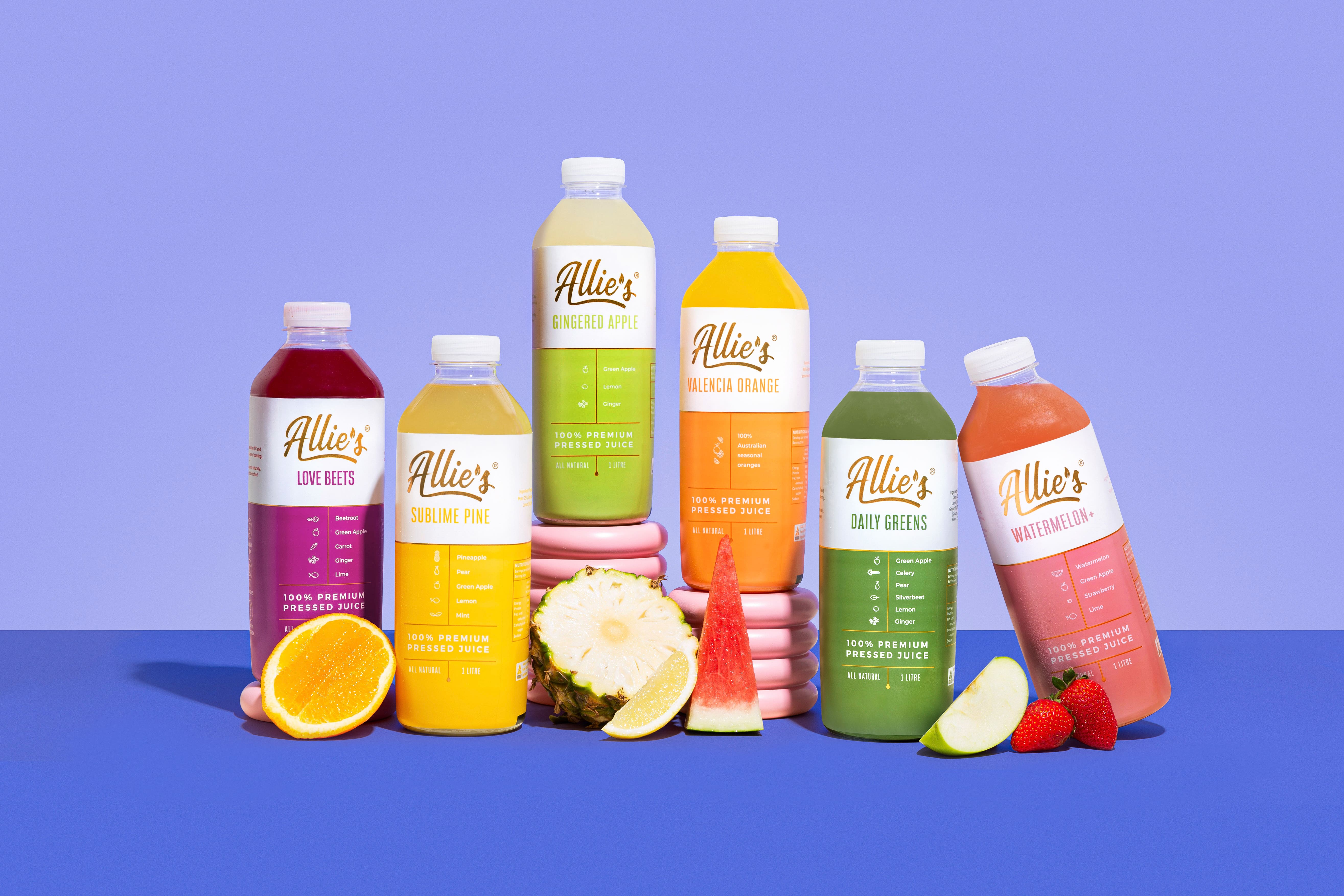 Allie’s juices are made from the goodness of 100% premium Australian fruits and veggies, cold-pressed to preserve their vitamins and minerals.